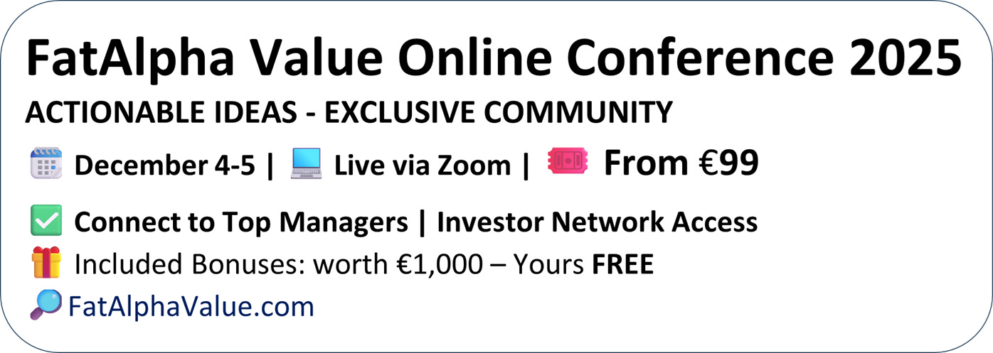 If you are interested in hearing ideas from additional speakers who participated in the 10th Cyprus event, then register for the Online event in December, where stock ideas will be pitched by 12 professional managers and investors. Click below to check it out.