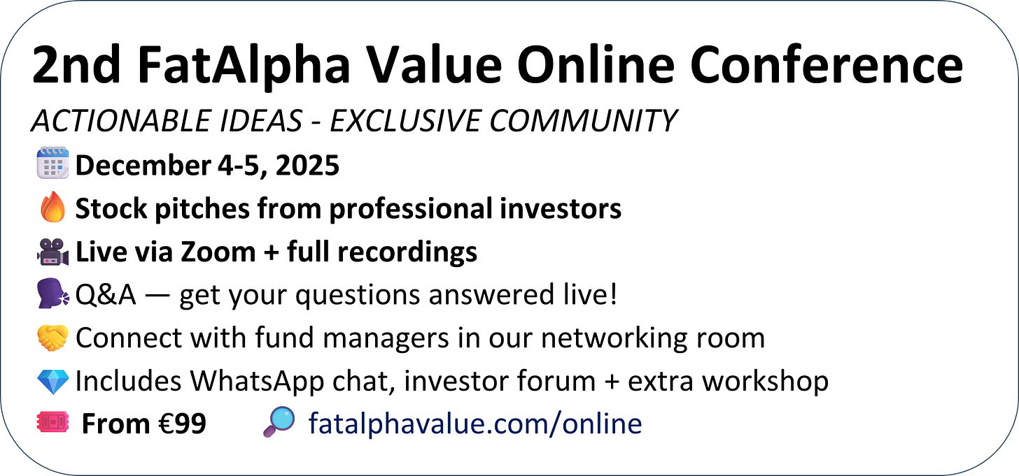 FYI, I’m organising a 2-day online event where 12 professional investors will pitch stock ideas live! Ask questions and join our WhatsApp Chat. Starting at 99 euros, check it out by clicking the button below.