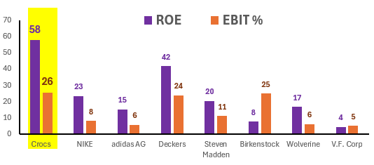Historically, Crocs has had fantastic returns on capital and very high margins compared to its competition.