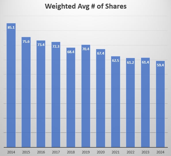 The company has consistently repurchased shares, thus reducing shares by over 30% in the last decade! There are currently under 52 million shares outstanding, while the company has a c. $900m outstanding program in place. At current prices, that translates to 11+ million shares or 20% + of share count!
